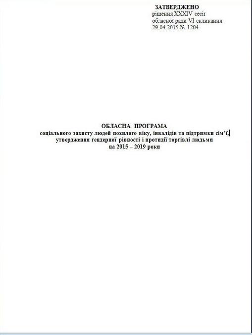 соціального захисту людей похилого віку, інвалідів та підтримки сім’ї, утвердження гендерної рівності і протидії торгівлі людьми на 2015 – 2019 роки Завантажити